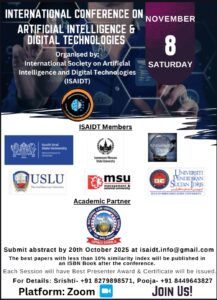 CALL FOR PAPERS: INTERNATIONAL CONFERENCE ON ARTIFICIAL INTELLIGENCE & DIGITAL TECHNOLOGIES, BY ISAIDT, HPNLU, Shimla, 8 November 2025