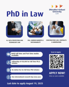 Call for Applications: for PhD in Law at School of Law, Dhirubhai Ambani University, Apply by 19th August 2025