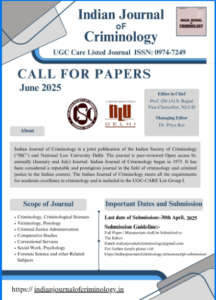 CALL FOR PAPERS: INDIAN JOURNAL OF CRIMINOLOGY, Volume 53 (2), Deadline of submission: 15th November 2025