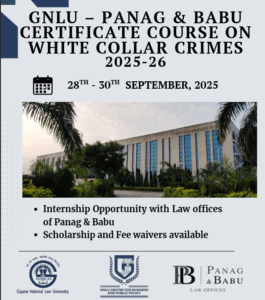 CALL FOR APPLICATIONS: GNLU – PANAG & BABU CERTIFICATE COURSE ON WHITE COLLAR CRIMES 2025-26, 28 – 30 SEPTEMBER, 2025