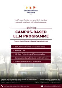 Call for Applications! One-Year LL.M (Regular) Program at Dhirubhai Ambani University – School of Law! Apply Now!