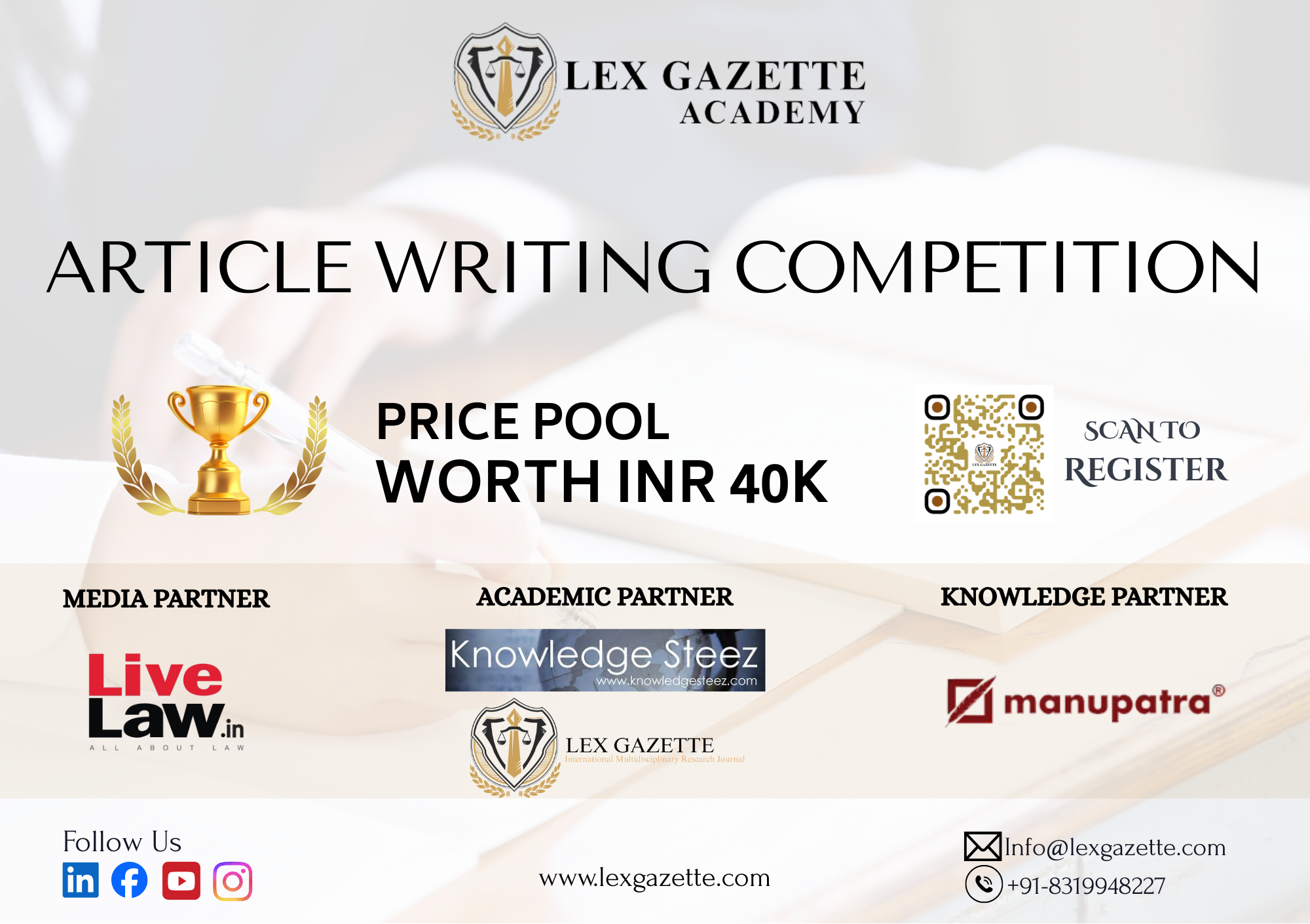 ARTICLE WRITING COMPETITION Organized by Lex Gazette Academy, LAST DATE FOR REGISTRATION: 25TH NOVEMBER 2025