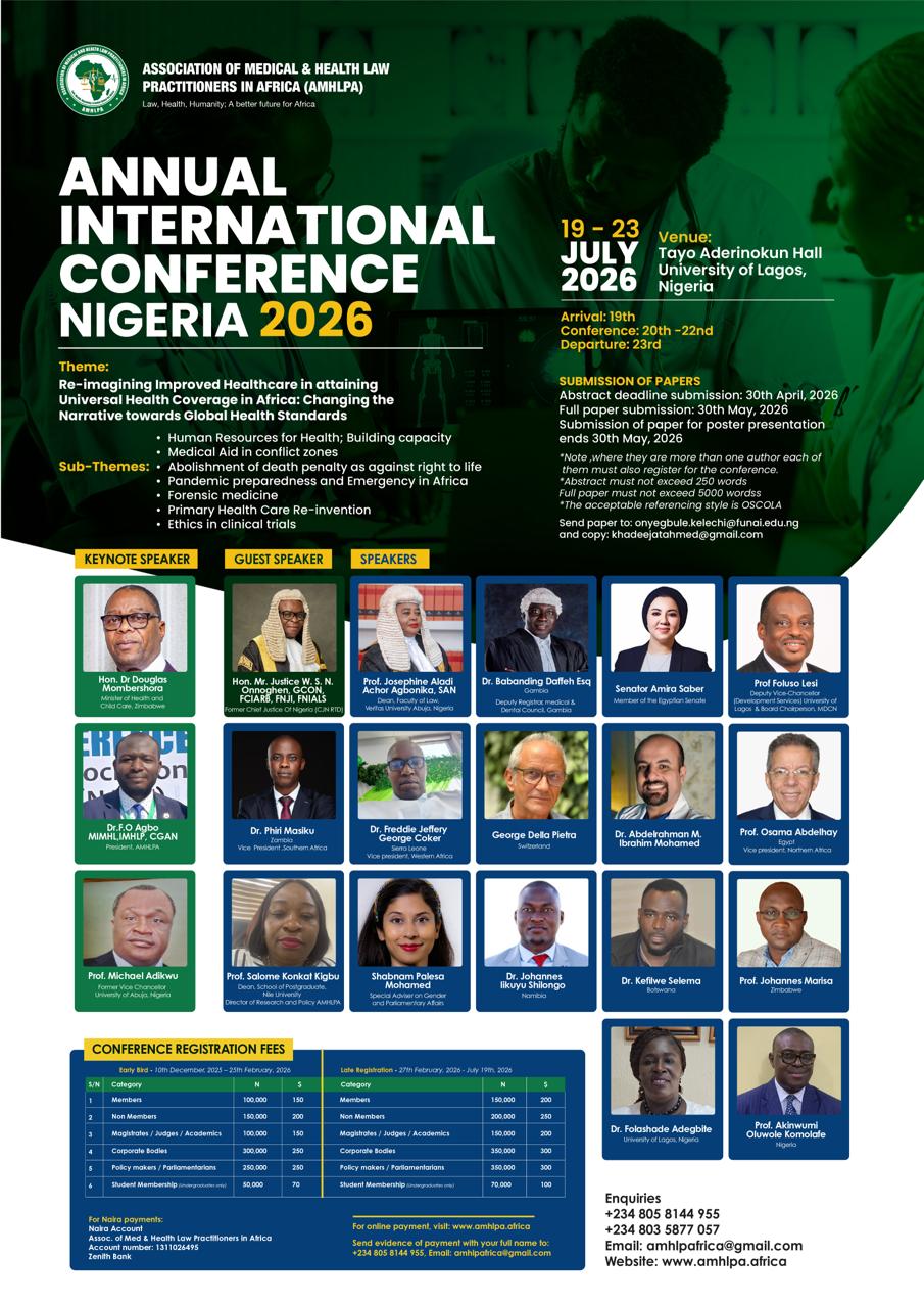Call for Papers: Annual International Conference on Re-imagining Improved Healthcare in attaining Universal Health Coverage in Africa: Changing the Narrative towards Global Health Standards, July 19-23, 2026