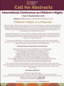 Call for Papers: International Conference on Children’s Rights Date: 8 Septemeber 2026, Stellenbosch University