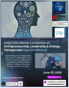 Call for Papers! International Conference on Entrepreneurship, Leadership & Change Management 2026 organised by Knowledge Steez Edu Hub LLP & Management & Science University, Malaysia in collaboration with Shaheed Sukhdev College of Business Studies, University of Delhi! Submit Now!