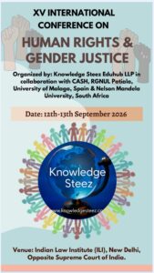15th INTERNATIONAL CONFERENCE 2026 ON HUMAN RIGHTS & GENDER JUSTICE organized by Knowledge Steez Edu Hub LLP in collaboration with CASH, RGNUL Patiala, University of Malaga, Spain & Nelson Mandela University, South Africa! Register Now!