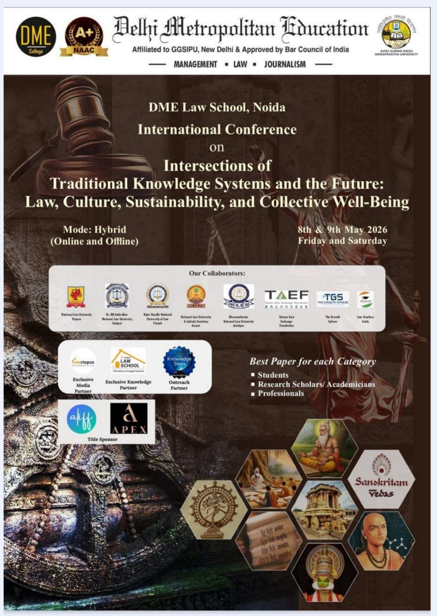 This conference is being organized by the DME Law School. The Law school offers LL.M. and 5-year integrated B.A., LL. B (Hons.) & B.B.A., LL. B(Hons.) programs and practices project-based pedagogy with a strong connection between classroom teaching and evolving legal & corporate needs.
