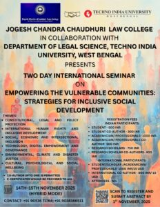 Call for Papers: Two-Day International Seminar on “Empowering the Vulnerable Communities: Strategies for Inclusive Social Development”, 14th–15th November 2025 November 3, 2025 Read More »
