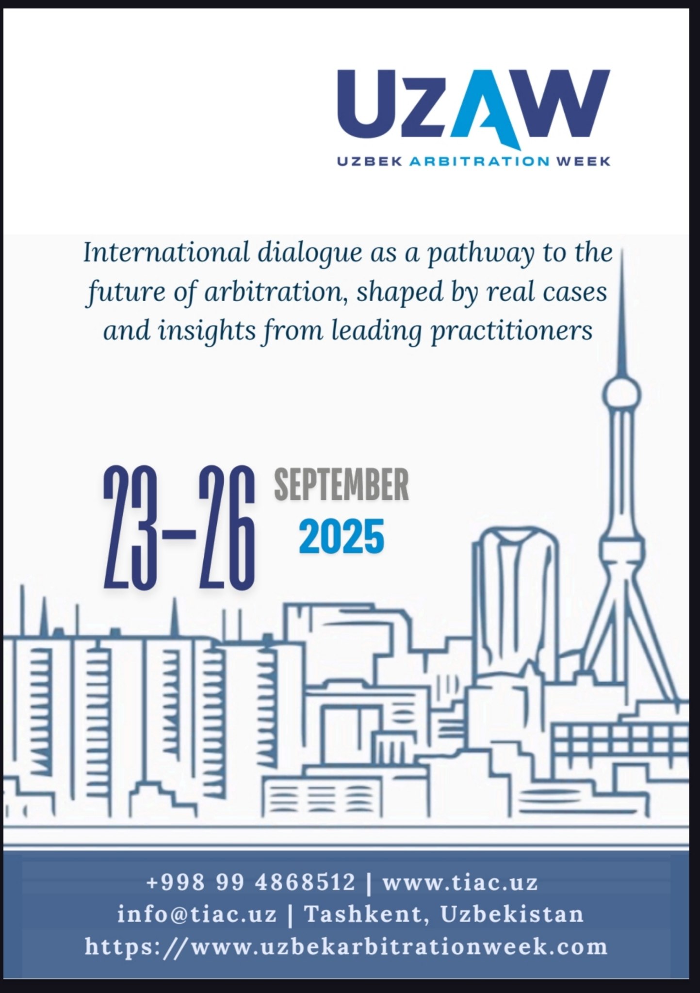 We are delighted to invite arbitration practitioners, corporate counsel, academics, and ADR professionals from around the world to join Uzbek Arbitration Week 2025. Hosted by the Tashkent International Arbitration Centre (TIAC) and the Chamber of Commerce and Industry of Uzbekistan, UzAW 2025 provides a dynamic platform for global dialogue and professional networking, further reinforcing Uzbekistan’s position as a growing regional hub for international arbitration.